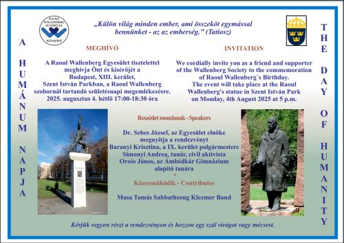 20 júl Rendezvényeink 2025. 08. 04. Meghívó Raoul Wallenberg születésnapi megemlékezésére 2025-07-24 By Nemesnyik Judith 0 comments 2025. augusztus 4. "Külön világ minden ember, ami össz... Continue reading